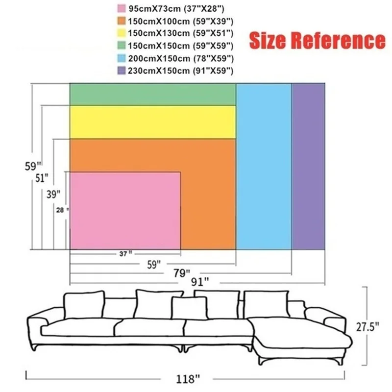 Tamaño: 95 cm x 73 cm / 150 cm x 100 cm / 150 cm x 130 cm / 200 cm x 150 cm