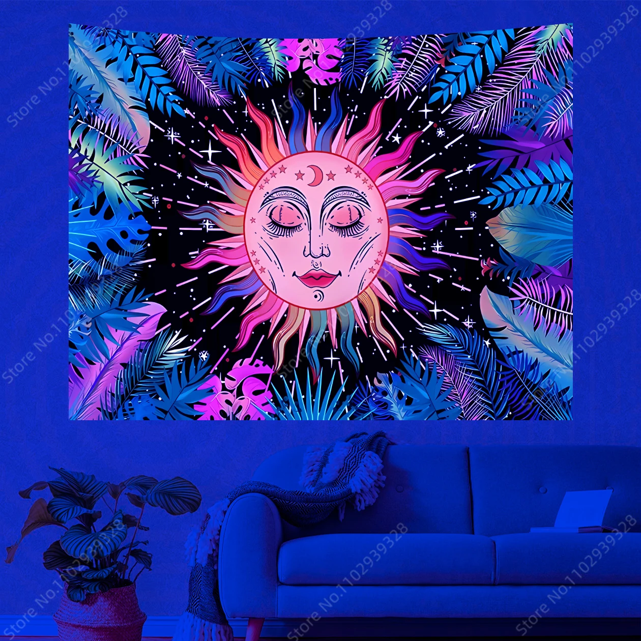 Tapiz reactivo UV de sol y luna, Tapiz Hippie del universo de fantasía para colgar en la pared, arte abstracto misterioso, decoración para dormitorio, estética del hogar
