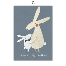 Toile d'art mural de dessin animé Boho, lapin, souris, oie, peinture nordique rétro, affiche imprimée, image murale, décor de chambre d'enfant et de bébé