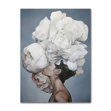 Peinture décorative pour salon, décoration de maison, fleurs, plumes, femme, toile abstraite, peinture murale, affiche imprimée