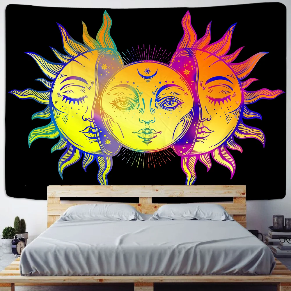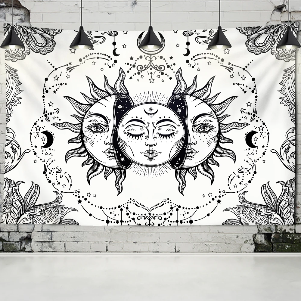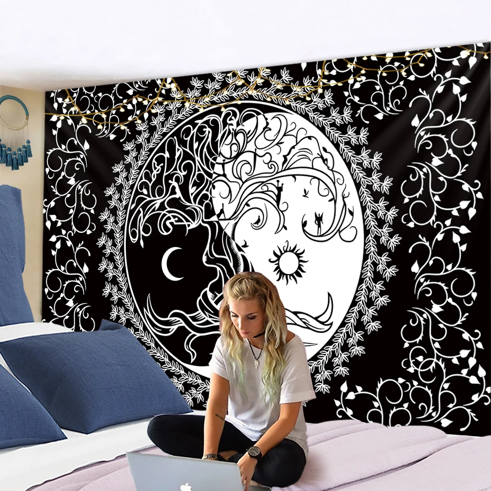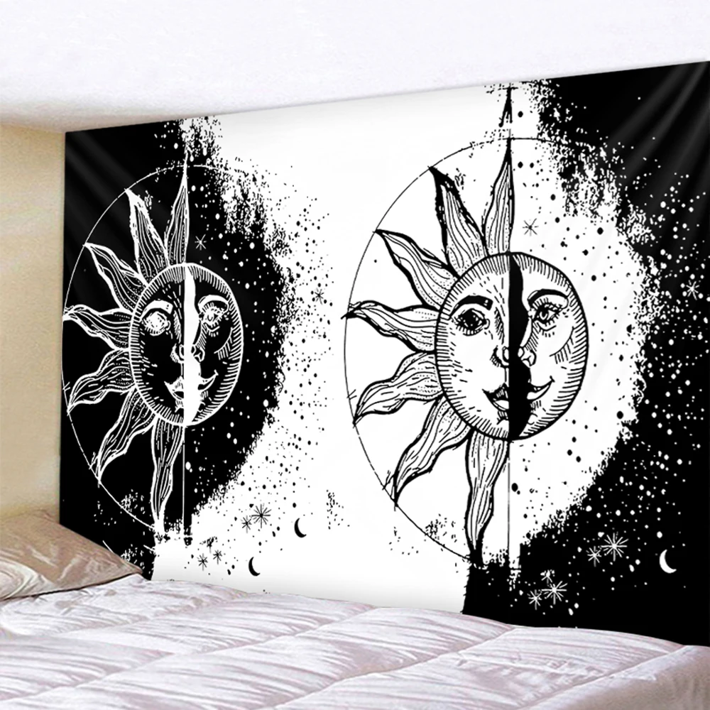 Arazzo mandala, arazzo sole e luna in bianco e nero da appendere alla parete, arazzo da divinazione, arazzo hippie, sfondo domestico dicembre