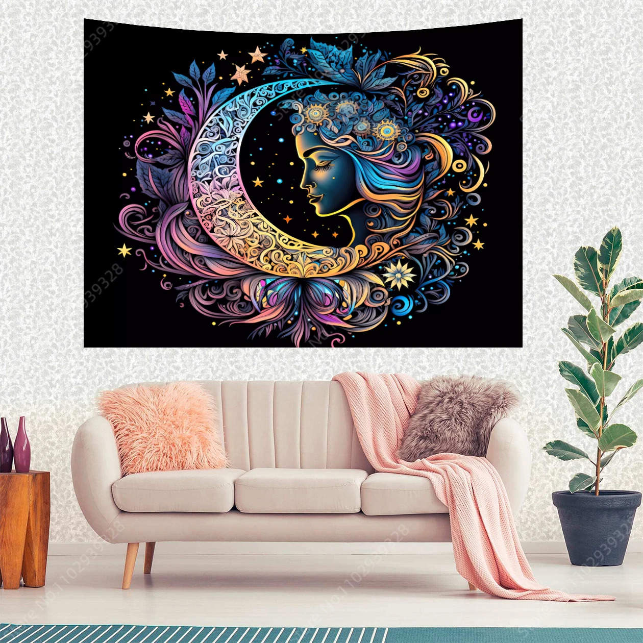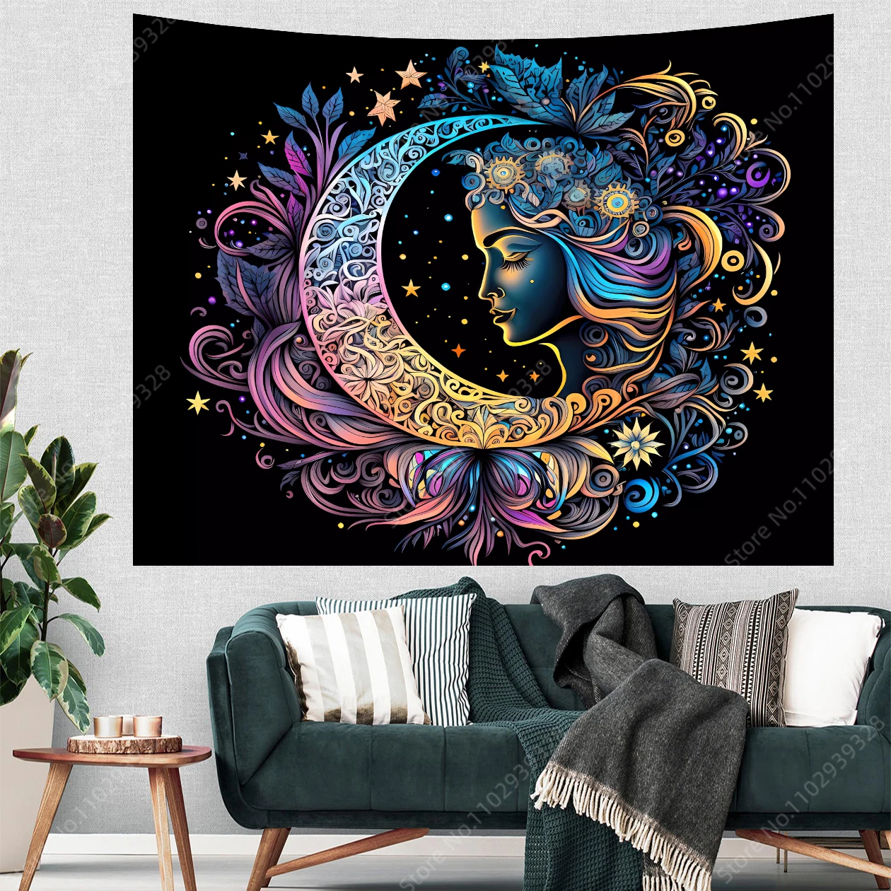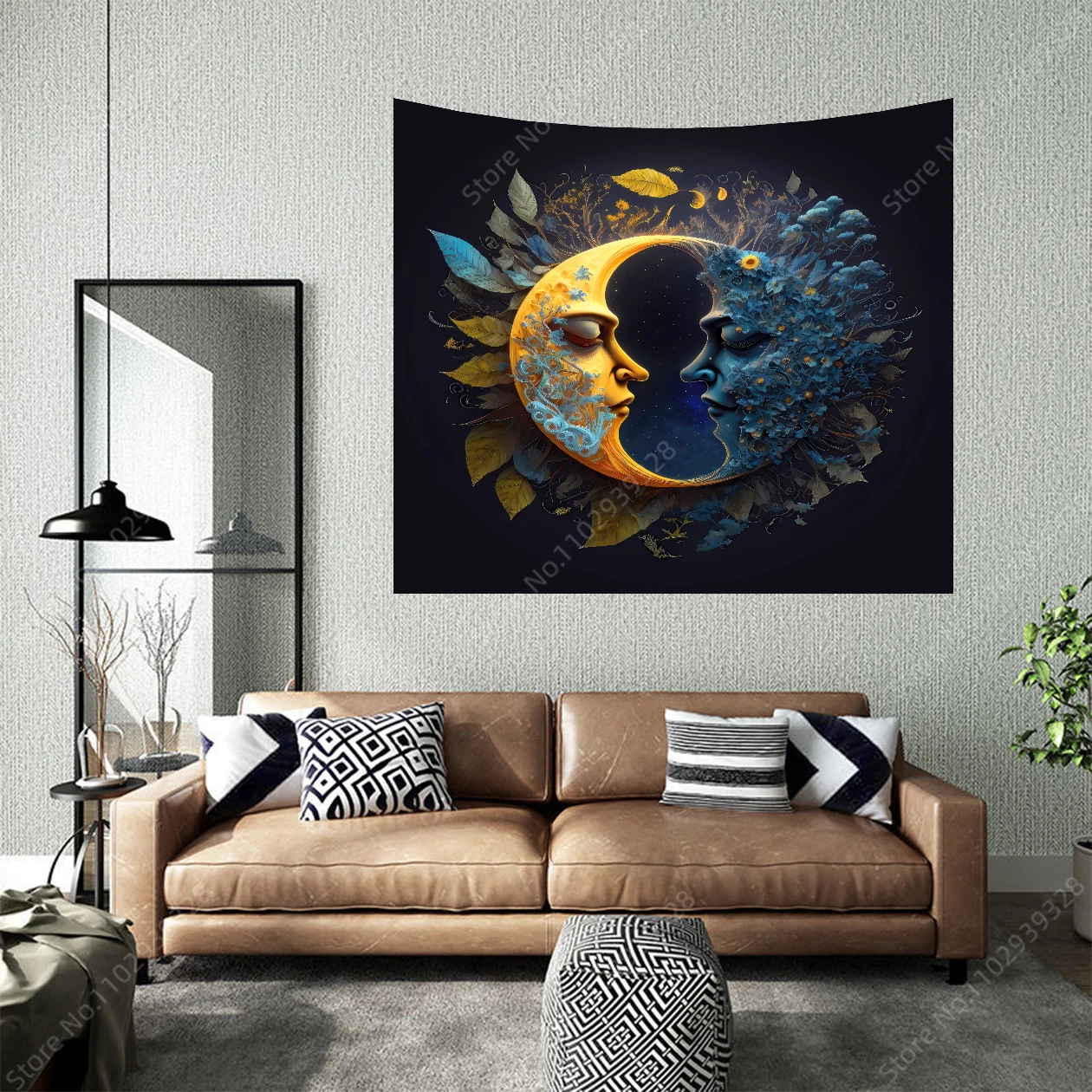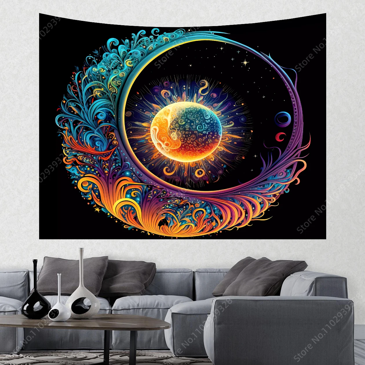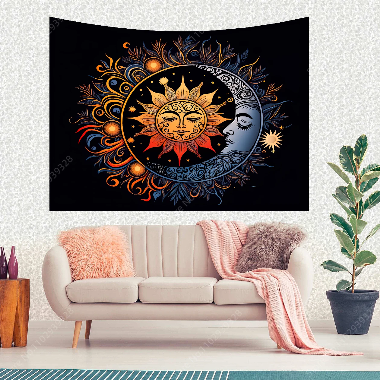 Sun Moon Mandala Arazzo appeso a parete Arte Estetica Sfondo Panno Stregoneria Arazzi Decorazione murale della stanza hippie