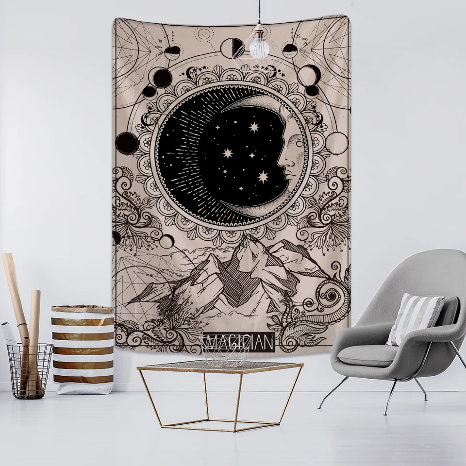 Luna Tarocchi Arazzo Appeso a parete Stregoneria psichedelica Hippie Tapiz Mandala Art Sfondo Panno Decorazioni per la casa