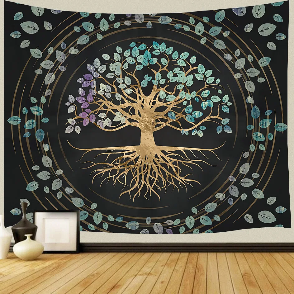 Nuovo albero della vita arte arazzo appeso a parete di grandi dimensioni bohemien tappetino yoga fogli mandala psichedelico stregoneria hippie decorazioni per la casa